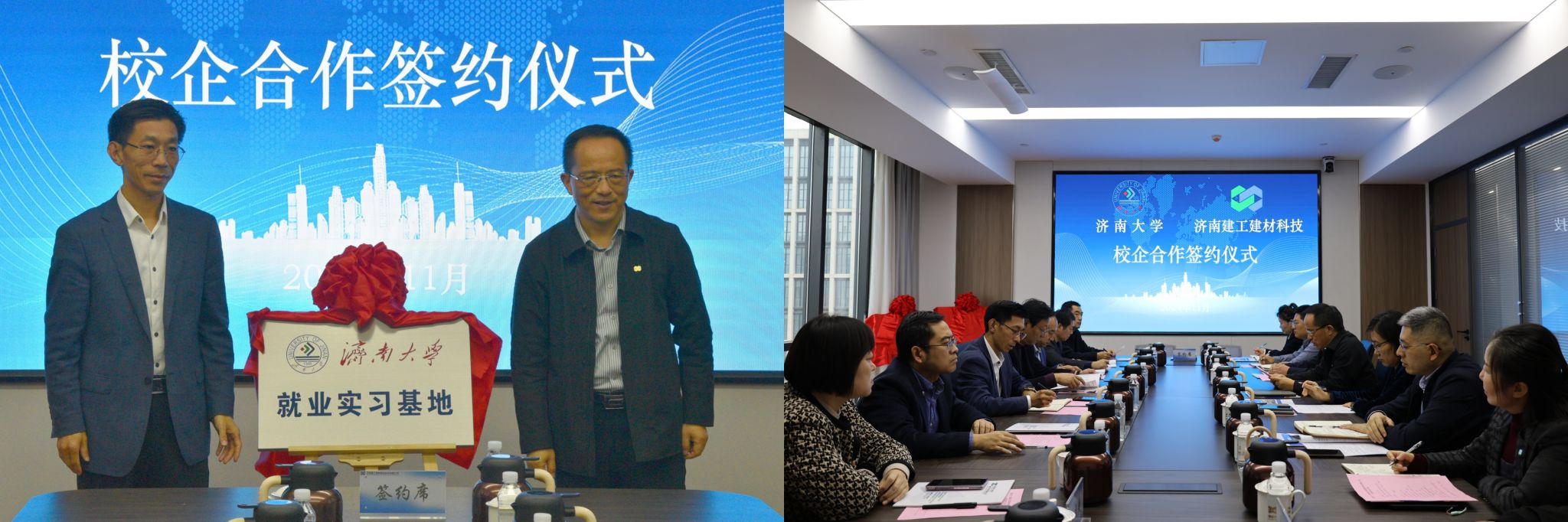 随后,校企双方签订了济南大学就业基地协议和济南大学教学实践基地协议并共同为基地揭牌。双方就人才培养、技术合作等事宜进行了深度洽谈,在人才培养、科技研发、成果转化等方面达成了深化合作共识,共同探讨通过校企合作进一步拓宽视野,把握新时代发展机遇,依托各自资源优势,积极搭建协同平台,深化务实合作,实现互利共赢。