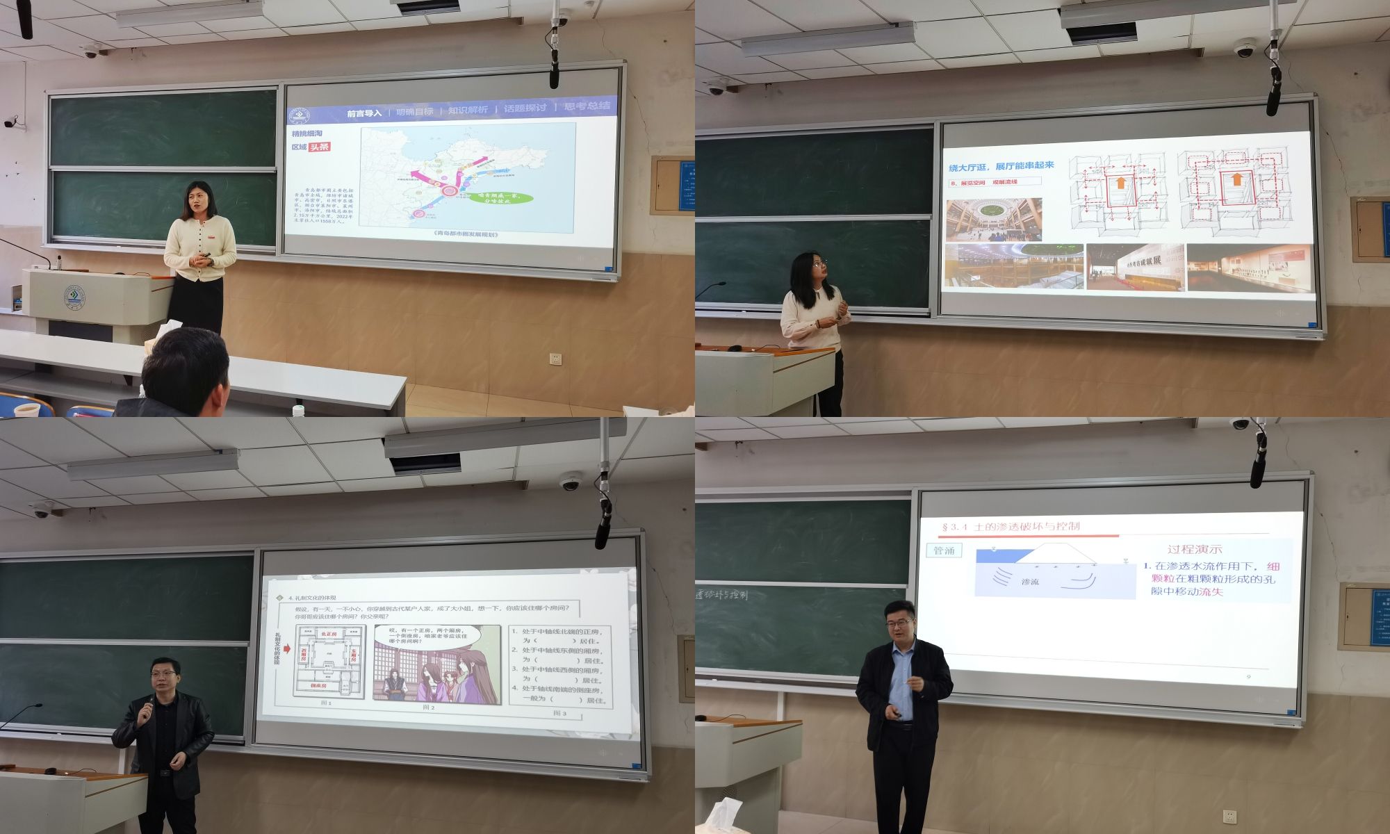 经系部举荐,本次比赛共有5位教师参加,分别讲授了《结构力学》《区域发展与规划概论》《土力学》《建筑设计3》《建筑设计2》课程。本次观摩赛邀请国家课程思政教学名师,教学创新大赛国家一等奖、二等获得者,国家一流课程负责人何文晶、王琨、张海鹍、丁广乾、张守彬五位专家担任比赛评委,学院全体教师对本次比赛进行了现场观摩。参赛教师展示出了自身对课程定位的深入理解,多种教学方法的有效结合,教学内容的精心组织,先进教学技术的使用以及课堂节奏的把握,受到了评委专家的一致好评。
