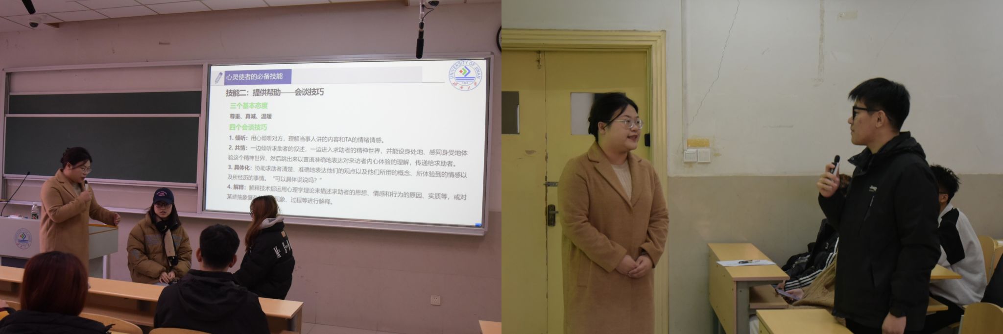 为帮助我院心灵使者、心理联络员进一步明确自身定位与职责,了解常见心理问题与处理方法,增强日常心理问题的疏导能力,12月17日,我院邀请学校心理指导中心的高雅琳老师在第十教学楼102教室开展“心灵相约 朋辈同行”大学生心理健康教育培训活动,心理协会成员、心灵使者及心灵联络员参与培训。