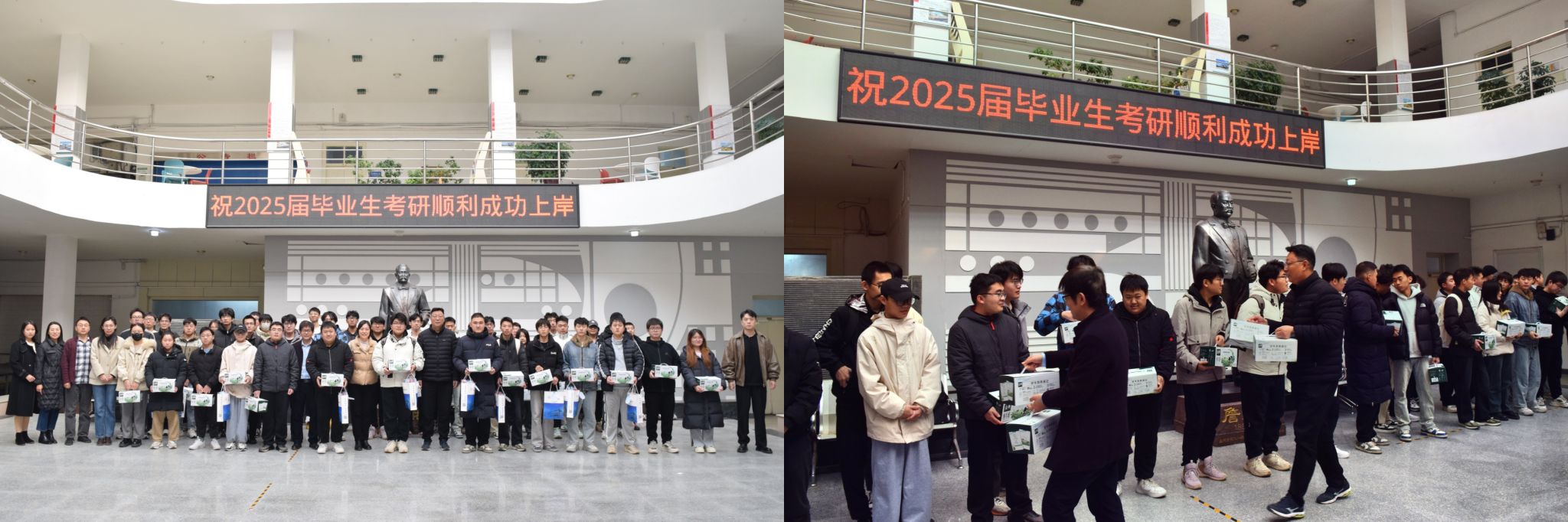 为鼓励2025届考研学子坚持不懈、全力冲刺,12月6日,学院党委书记李超,党委副书记、副院长朱小燕、副院长杨涛春以及全体辅导员老师对考研学子进行了慰问。各班级考研学生代表参加了慰问活动。