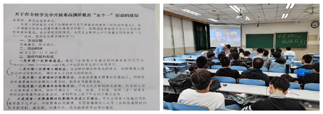 为深入贯彻落实《关于加强新时代全民禁毒宣传教育工作的指导意见》,进一步增强在校学生识毒防毒拒毒意识和能力,按照国家禁毒委员会办公室和教育部通知要求,结合学院实际情况,土木建筑学院于10月2日到11月30日在学院学生中开展了主题为“远离毒品,阳光前行”的毒品预防教育“五个一”活动。