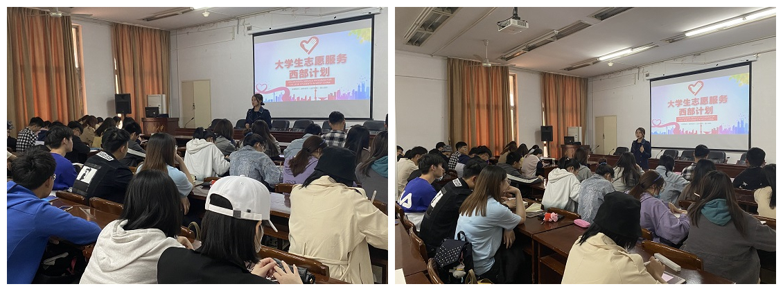 会上,白雪飞老师对西部计划志愿者政策保障、近年志愿者的招录情况、在岗服务情况以及西部风土人情进行了详细介绍。随后,她又为大家分享了我院部分志愿者参加西部计划的初衷、在基层服务的丰富经历以及作为西部计划志愿者的巨大收获。