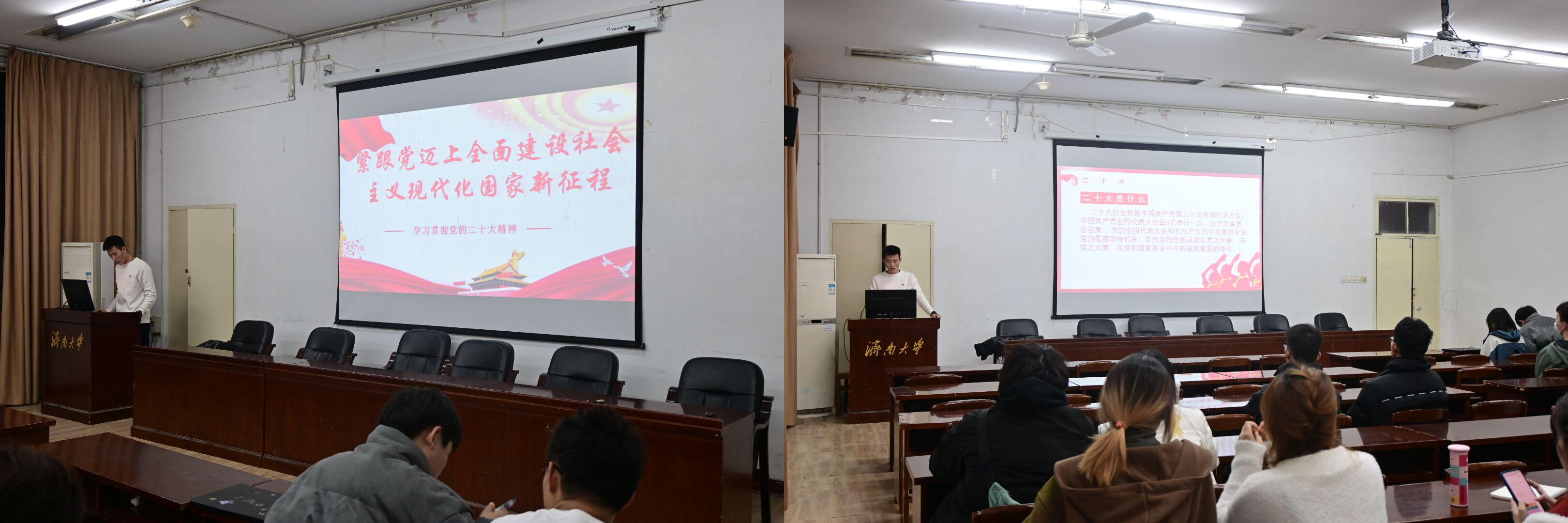 本期学习班主讲人带领学生骨干围绕党的二十大精神进行深入学习。给水2102班张智垚作为本期学习班主讲人说到:“我认为党的二十大报告对于青年人生规划发展有很重要的指引作用,我们青年大学生应该响应党的号召,革命精神一块砖,哪里需要往哪搬,去祖国人民最需要我们的地方去发展。”
