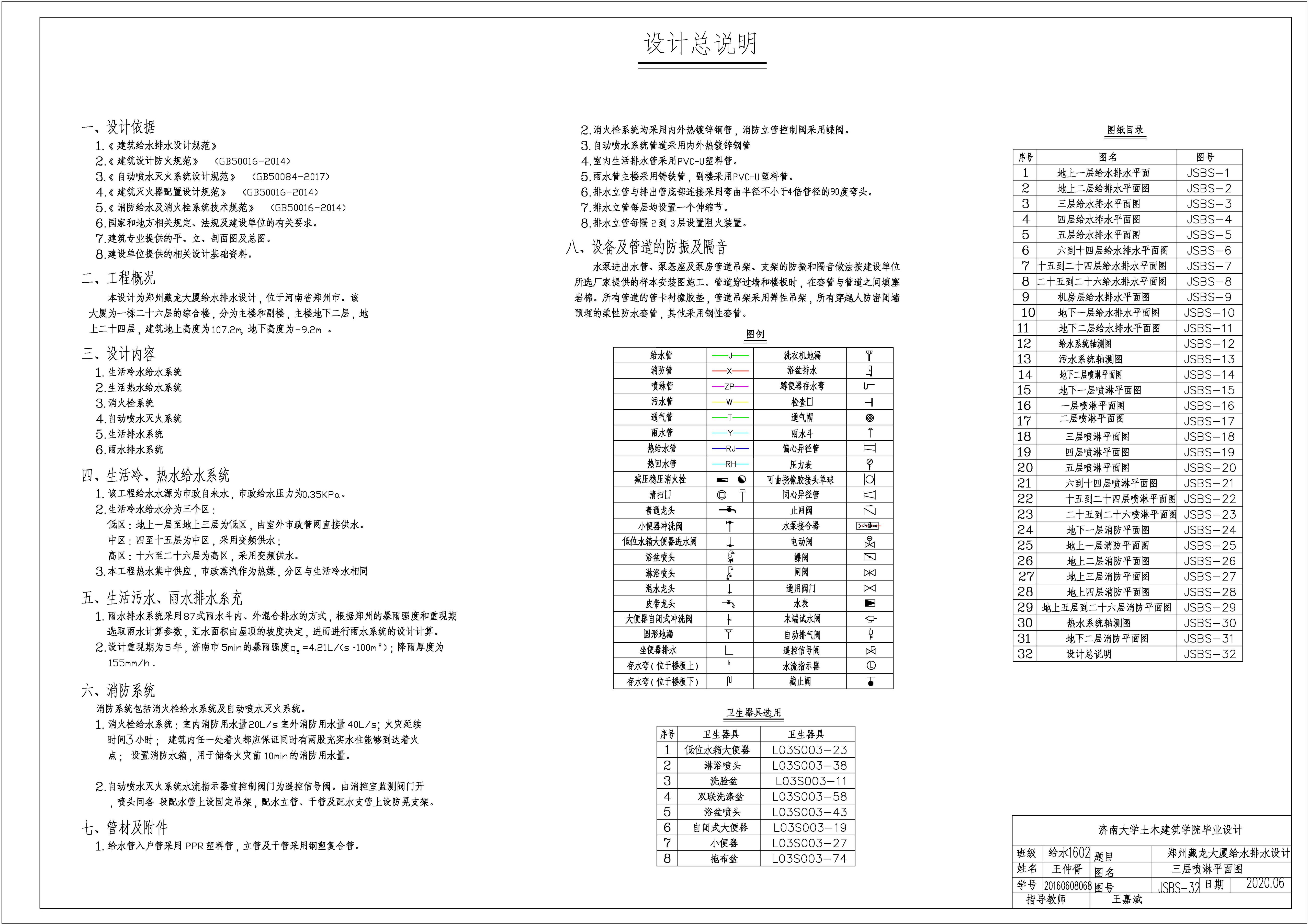 题目:郑州藏龙大厦给水排水设计